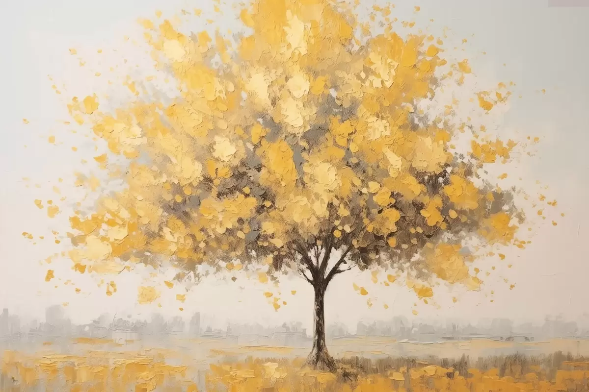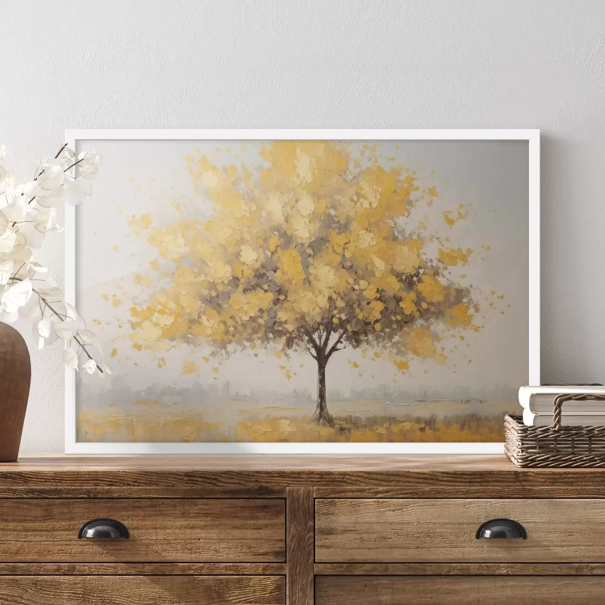 Affiche Arbre aux feuilles jaunes dans un style impressionniste f42480