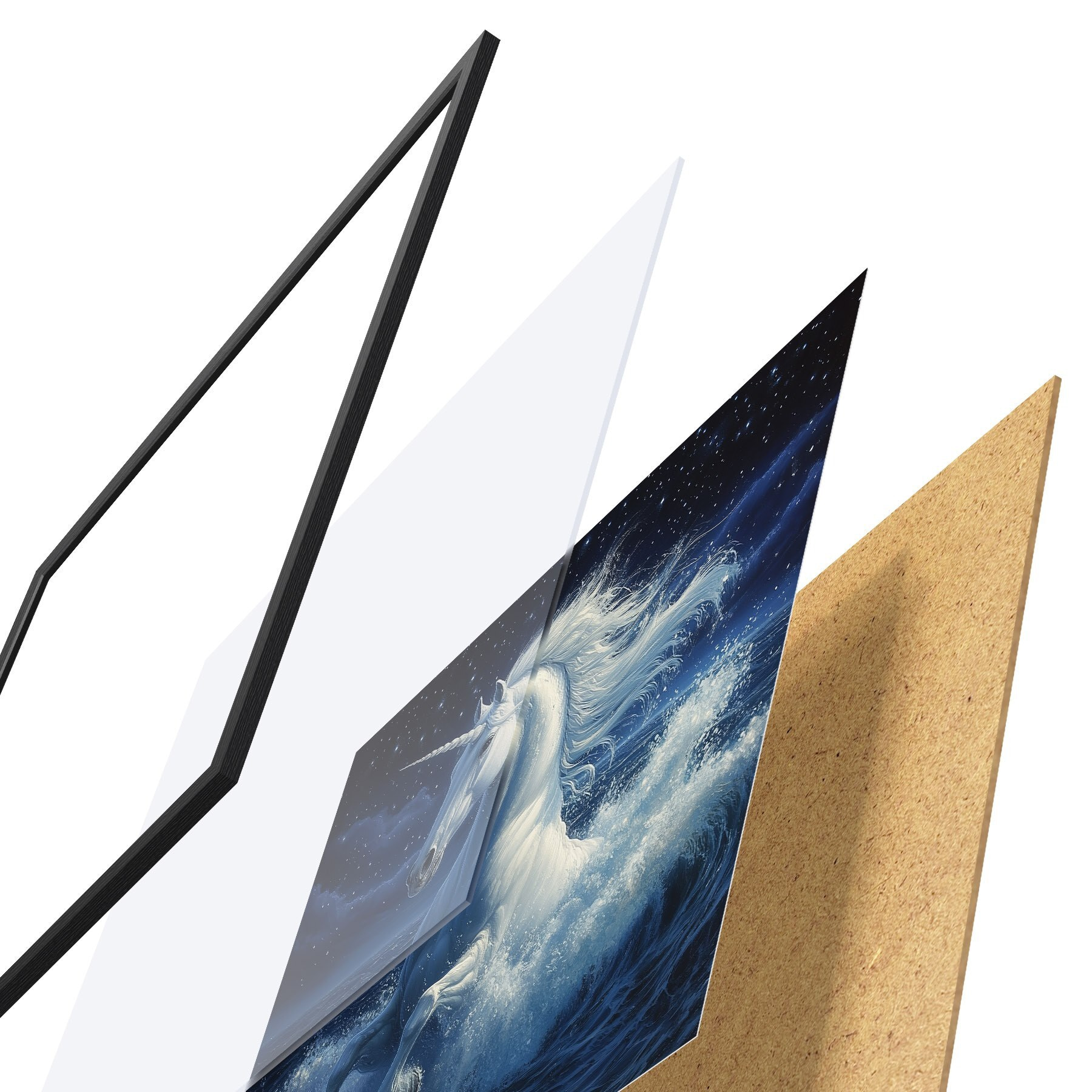 Le poster se compose d'un cadre, d'un plexiglas, d'une image imprimée et d'un support en aggloméré. Le poster peut être immédiatement accroché au mur grâce aux fixations au dos.