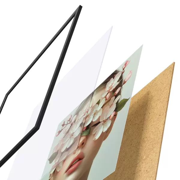 Le poster se compose d'un cadre, d'un plexiglas, d'une image imprimée et d'un support en aggloméré. Le poster peut être immédiatement accroché au mur grâce aux fixations au dos.