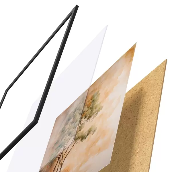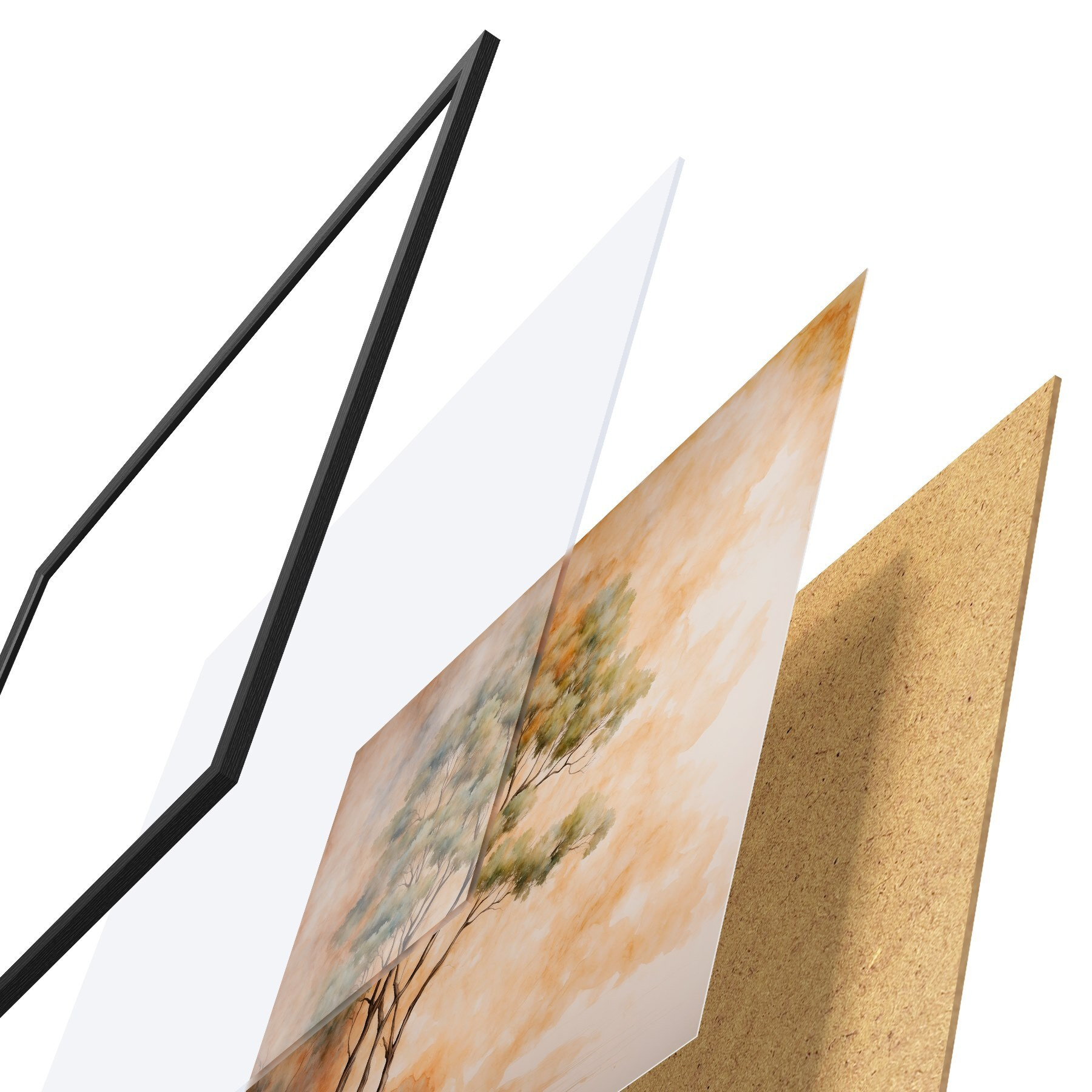 Le poster se compose d'un cadre, d'un plexiglas, d'une image imprimée et d'un support en aggloméré. Le poster peut être immédiatement accroché au mur grâce aux fixations au dos.