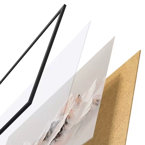 Le poster se compose d'un cadre, d'un plexiglas, d'une image imprimée et d'un support en aggloméré. Le poster peut être immédiatement accroché au mur grâce aux fixations au dos.