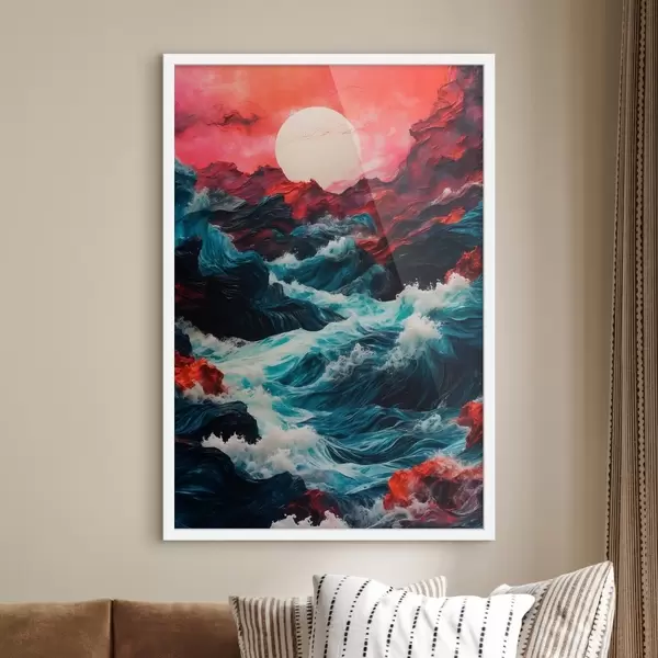 Affiche Mer agitée et soleil blanc Non f42519
