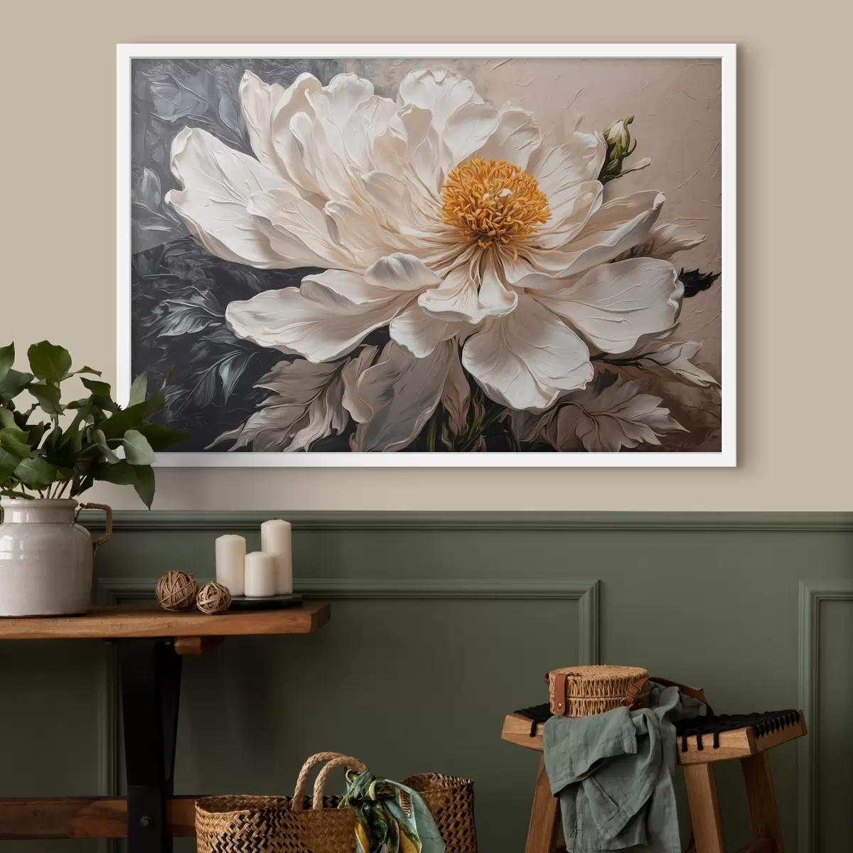 Affiche Fleur blanche sur fond noir et beige Non f42522