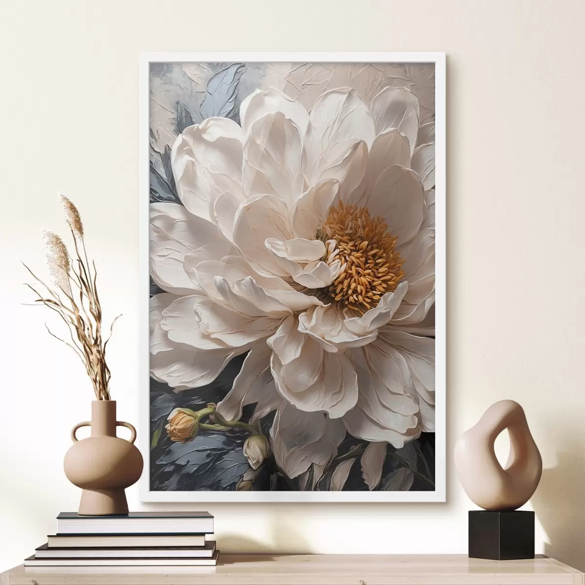Affiche Fleur blanche sur fond bleu-beige Non f42523