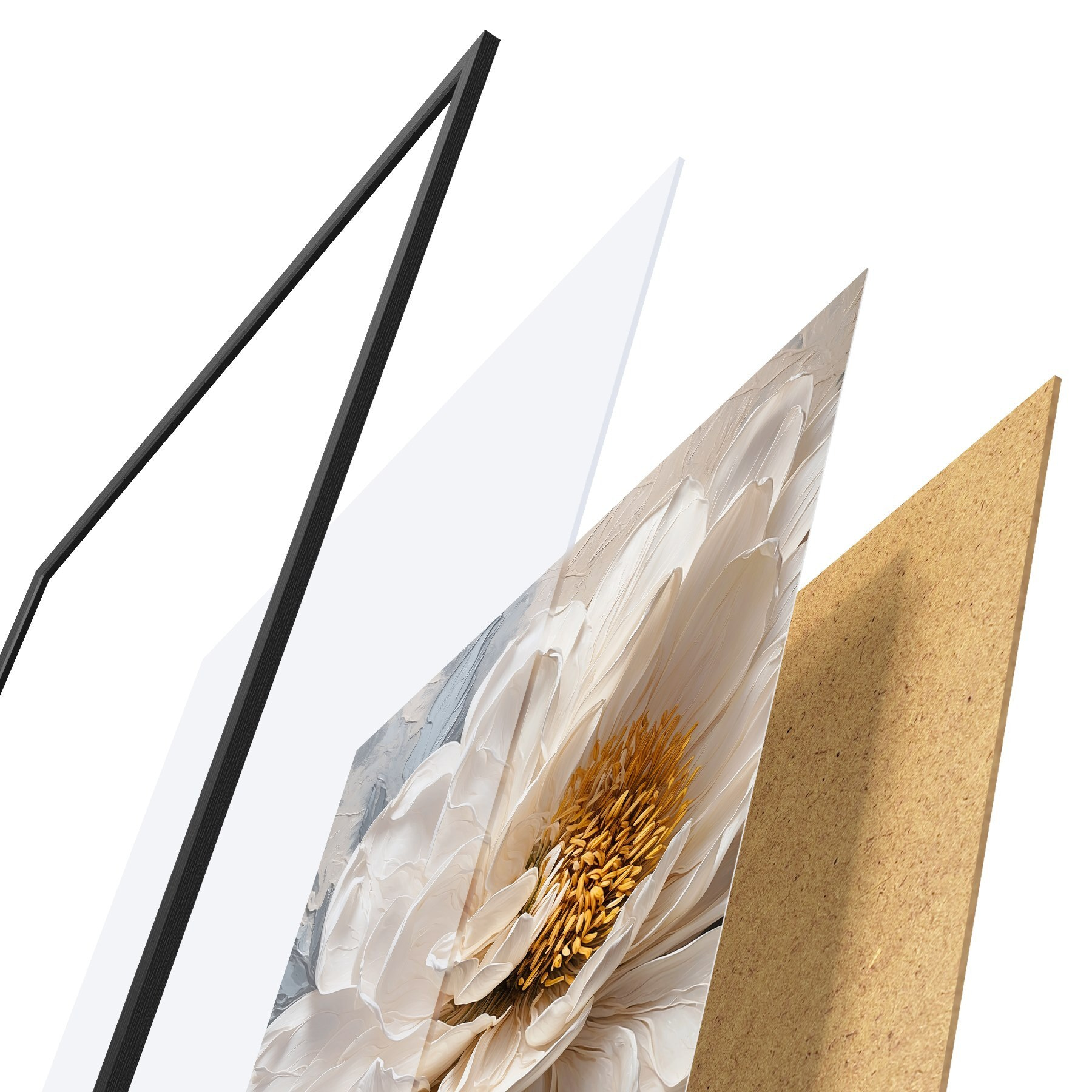 Le poster se compose d'un cadre, d'un plexiglas, d'une image imprimée et d'un support en aggloméré. Le poster peut être immédiatement accroché au mur grâce aux fixations au dos.