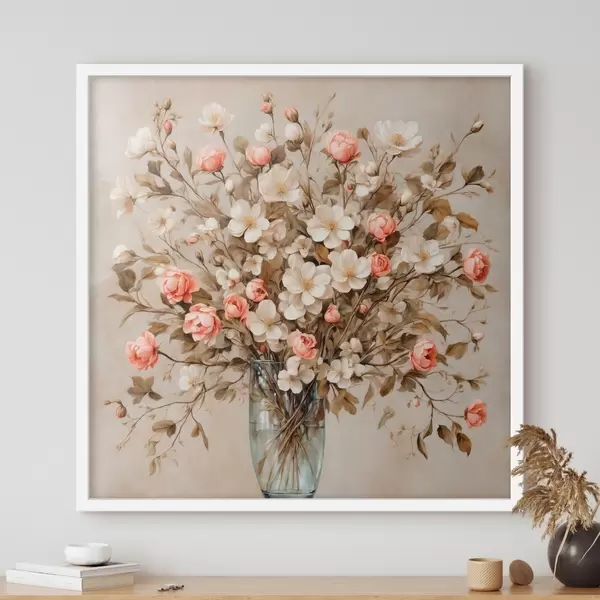 Affiche Fleurs dans un vase transparent sur fond beige Non f42534