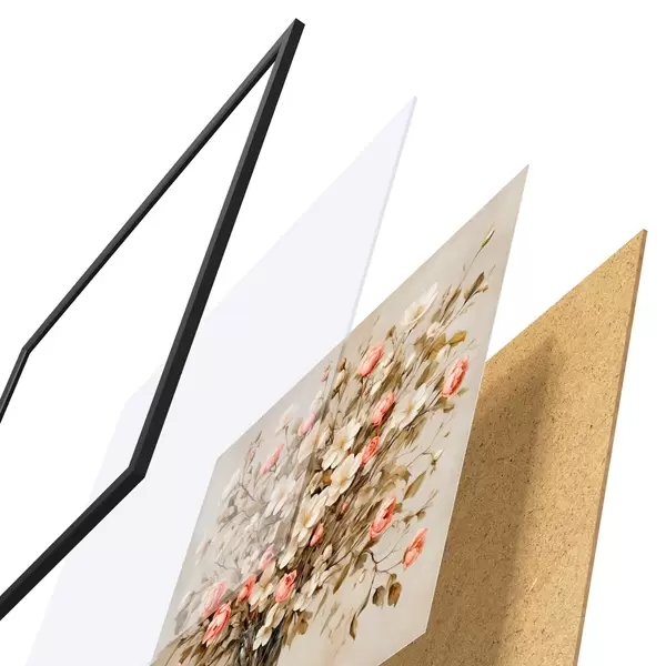 Le poster se compose d'un cadre, d'un plexiglas, d'une image imprimée et d'un support en aggloméré. Le poster peut être immédiatement accroché au mur grâce aux fixations au dos.