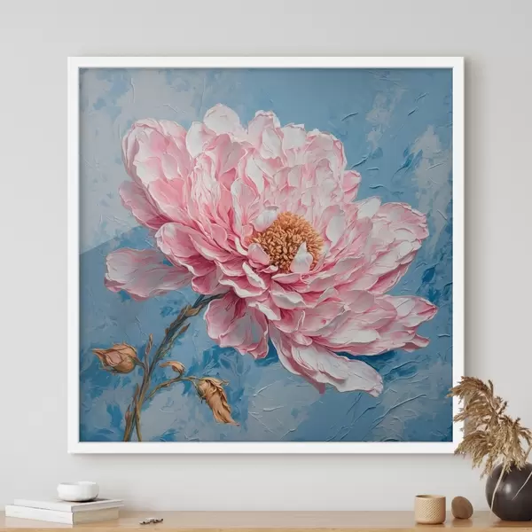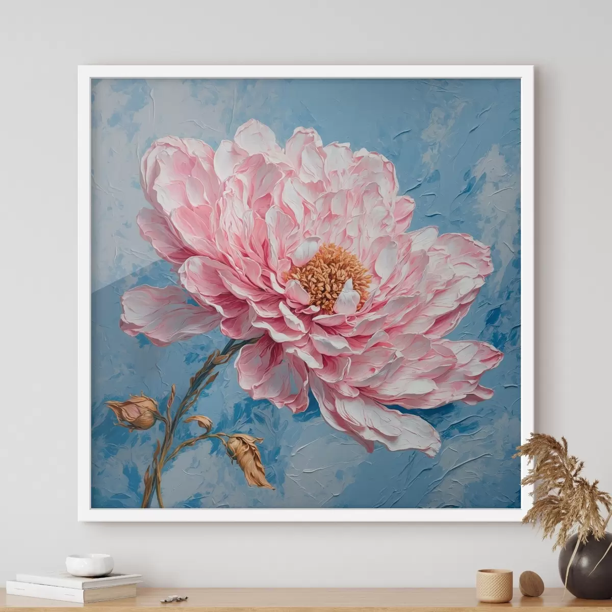 Affiche Fleur rose sur fond bleu dans le style de la peinture à l'huile Non f42537