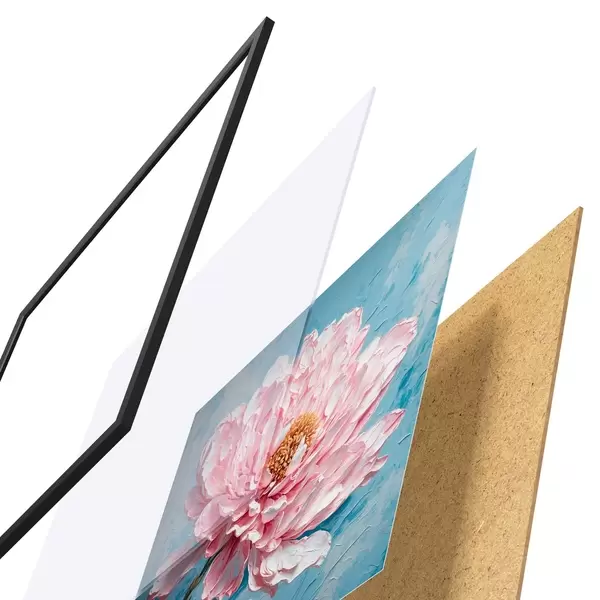 Le poster se compose d'un cadre, d'un plexiglas, d'une image imprimée et d'un support en aggloméré. Le poster peut être immédiatement accroché au mur grâce aux fixations au dos.