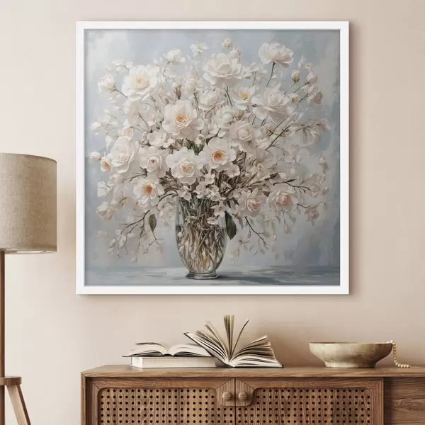 Affiche Fleurs blanches dans un vase transparent en peinture acrylique f42545