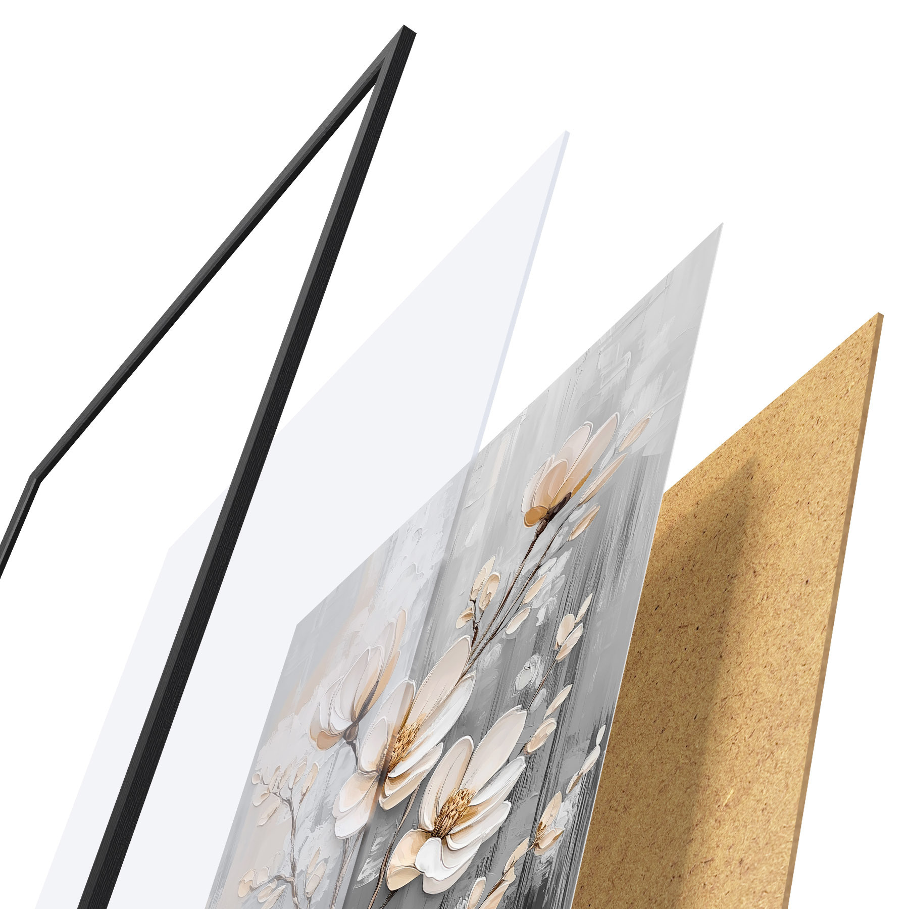 Le poster se compose d'un cadre, d'un plexiglas, d'une image imprimée et d'un support en aggloméré. Le poster peut être immédiatement accroché au mur grâce aux fixations au dos.