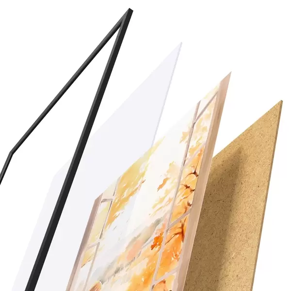Le poster se compose d'un cadre, d'un plexiglas, d'une image imprimée et d'un support en aggloméré. Le poster peut être immédiatement accroché au mur grâce aux fixations au dos.