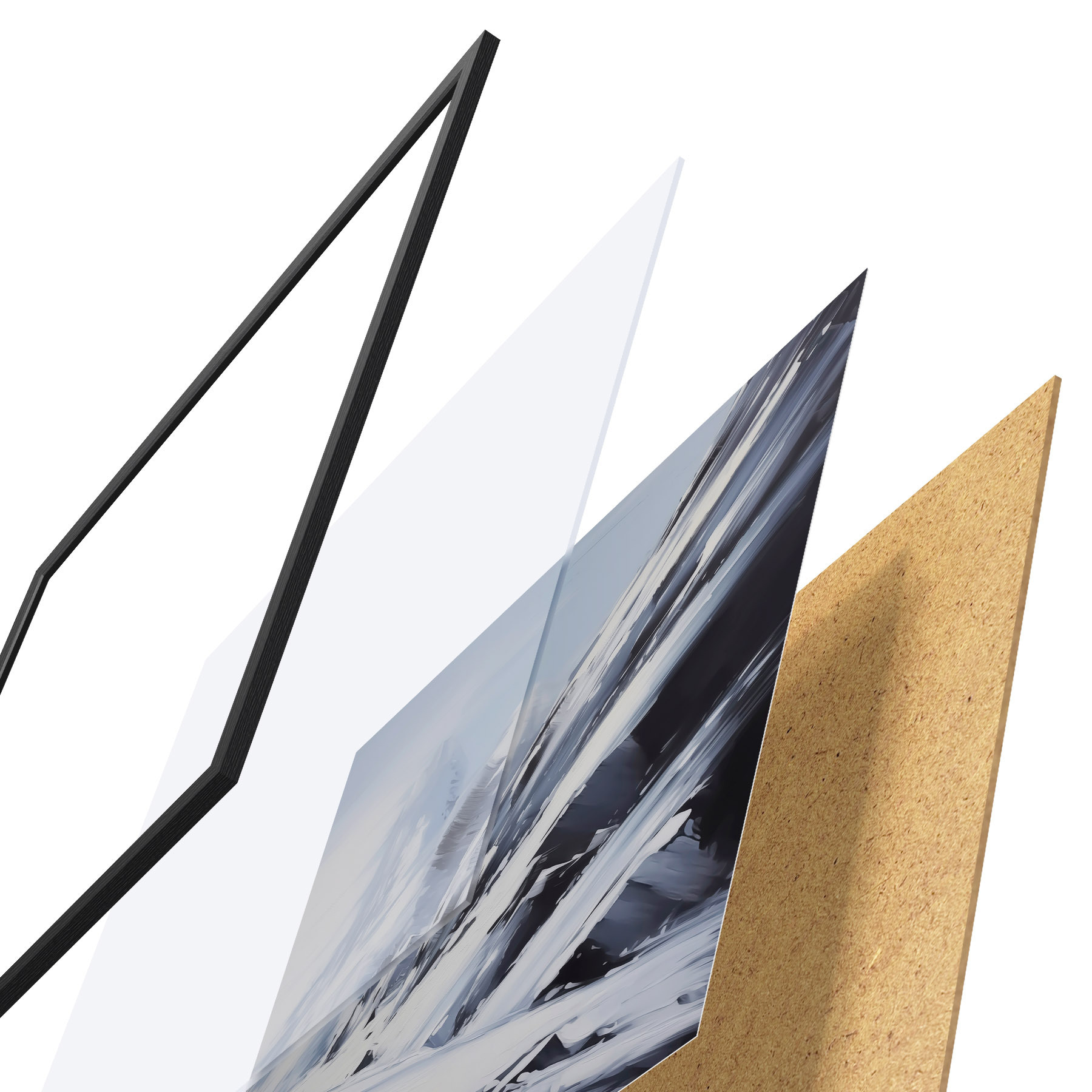 Le poster se compose d'un cadre, d'un plexiglas, d'une image imprimée et d'un support en aggloméré. Le poster peut être immédiatement accroché au mur grâce aux fixations au dos.