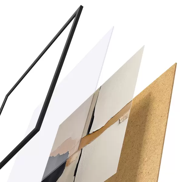 Le poster se compose d'un cadre, d'un plexiglas, d'une image imprimée et d'un support en aggloméré. Le poster peut être immédiatement accroché au mur grâce aux fixations au dos.