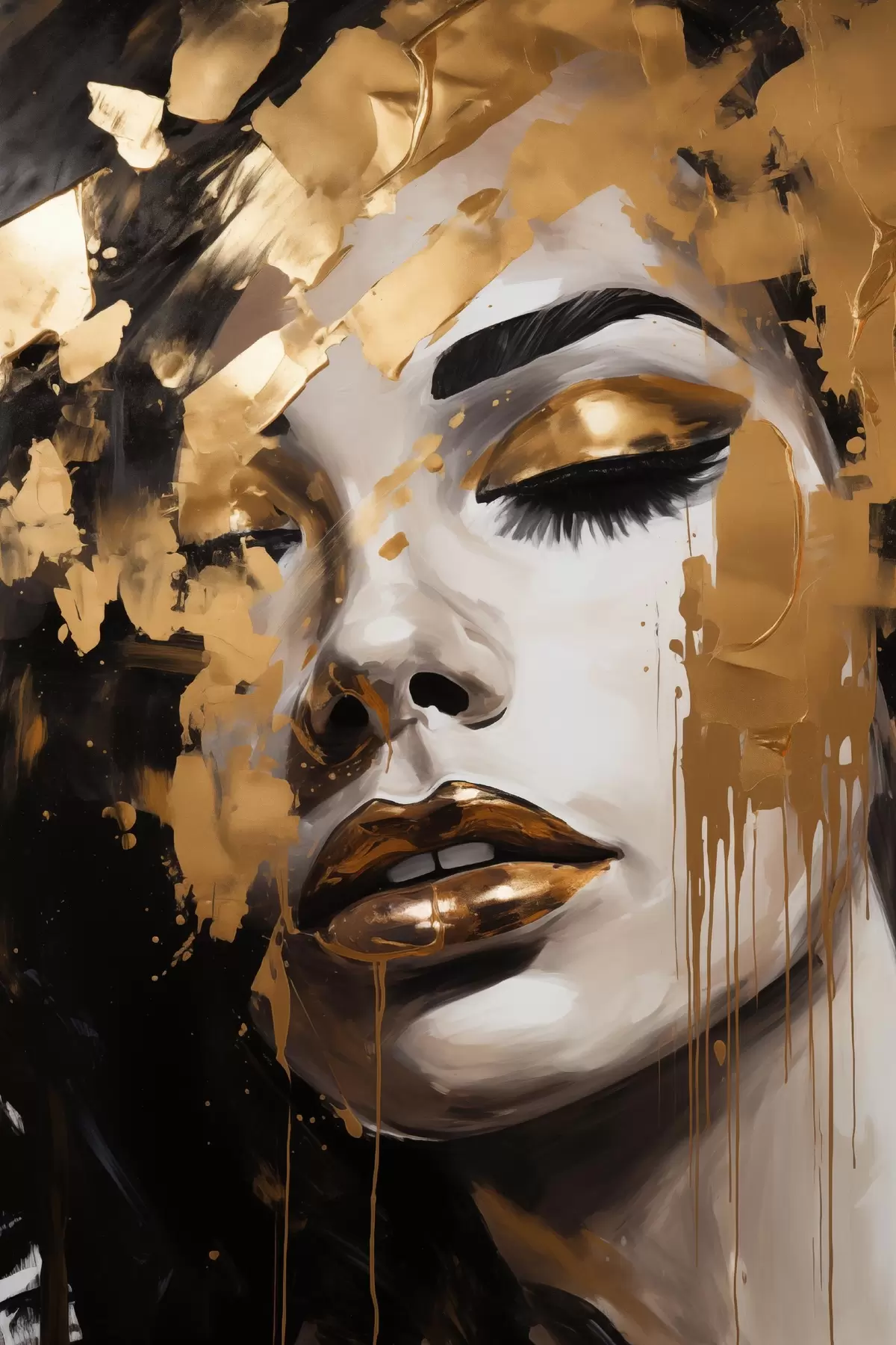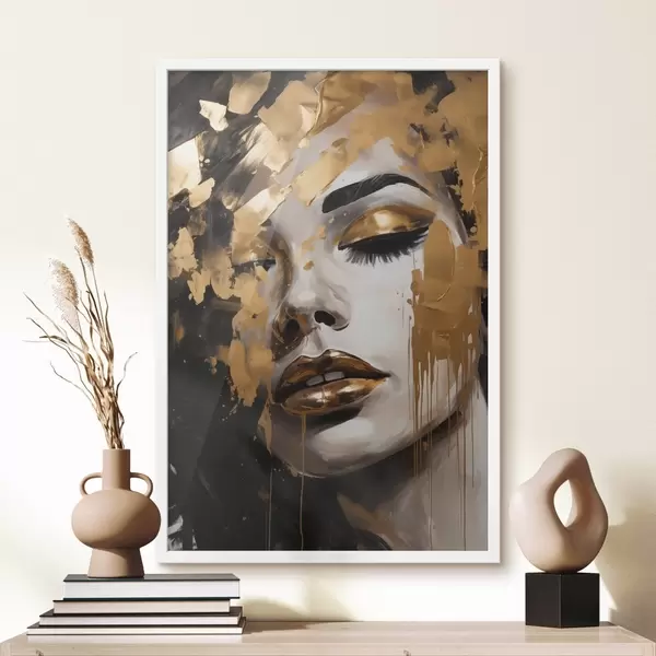 Affiche Portrait abstrait d'une femme avec de riches coups de pinceau dans des tons chauds, créant une image vibrante et dramatique. f42619