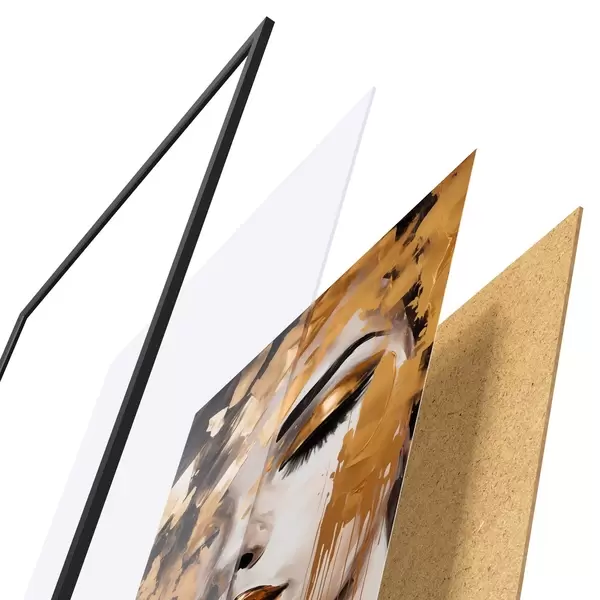 Le poster se compose d'un cadre, d'un plexiglas, d'une image imprimée et d'un support en aggloméré. Le poster peut être immédiatement accroché au mur grâce aux fixations au dos.