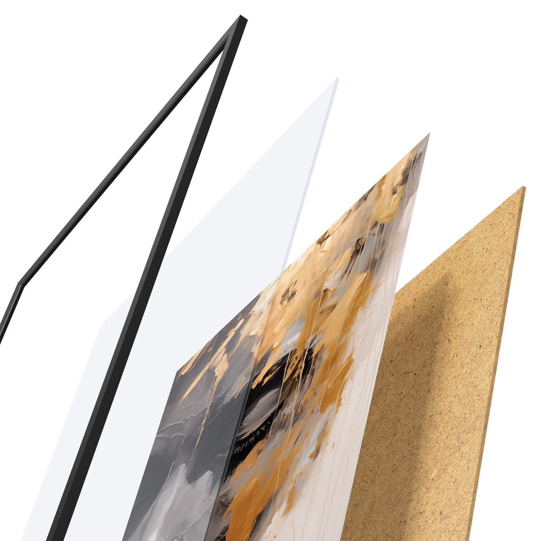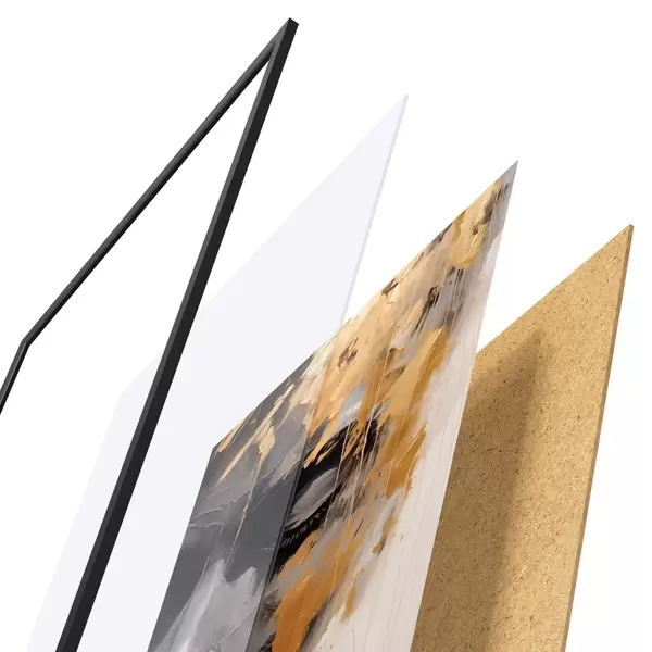 Le poster se compose d'un cadre, d'un plexiglas, d'une image imprimée et d'un support en aggloméré. Le poster peut être immédiatement accroché au mur grâce aux fixations au dos.
