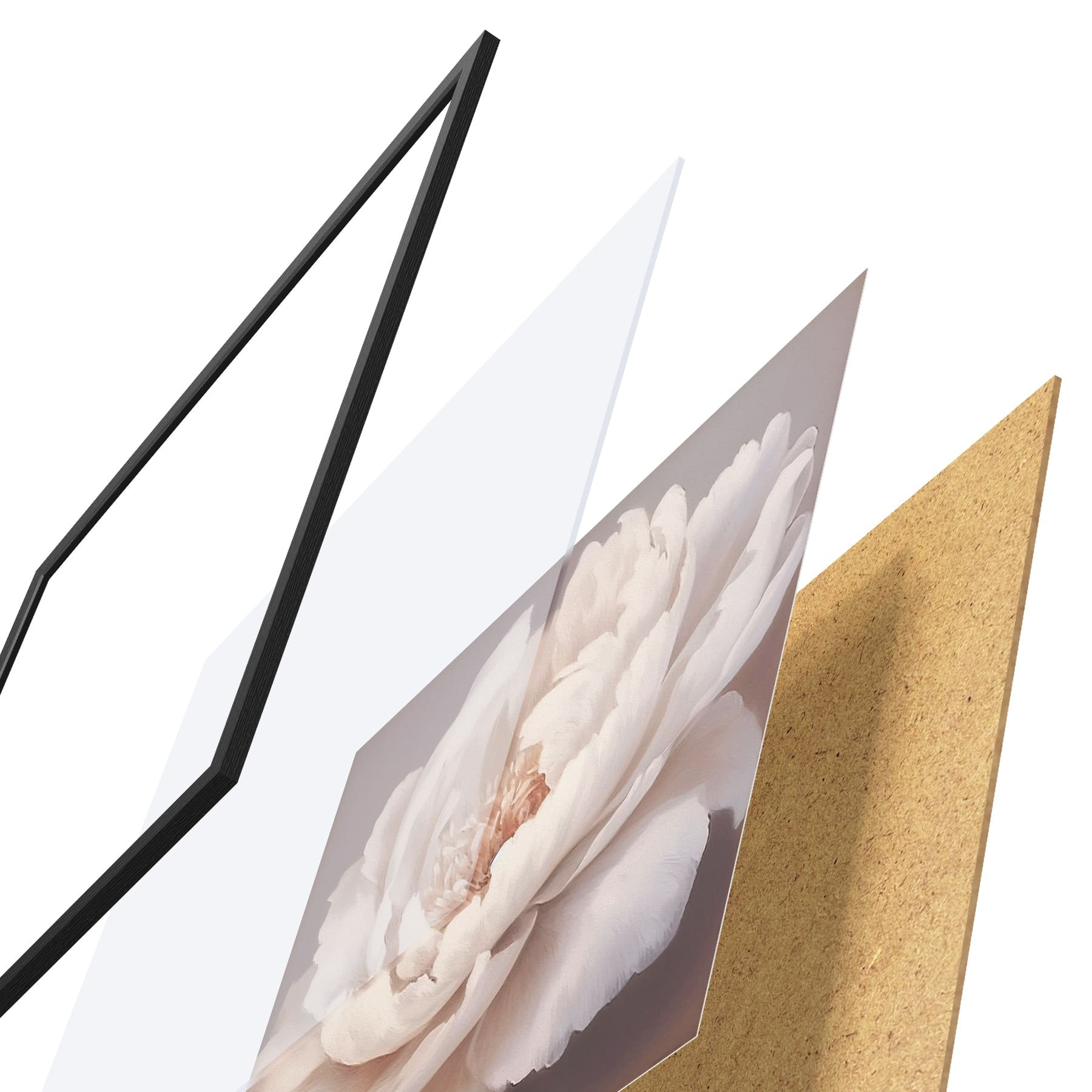 Le poster se compose d'un cadre, d'un plexiglas, d'une image imprimée et d'un support en aggloméré. Le poster peut être immédiatement accroché au mur grâce aux fixations au dos.
