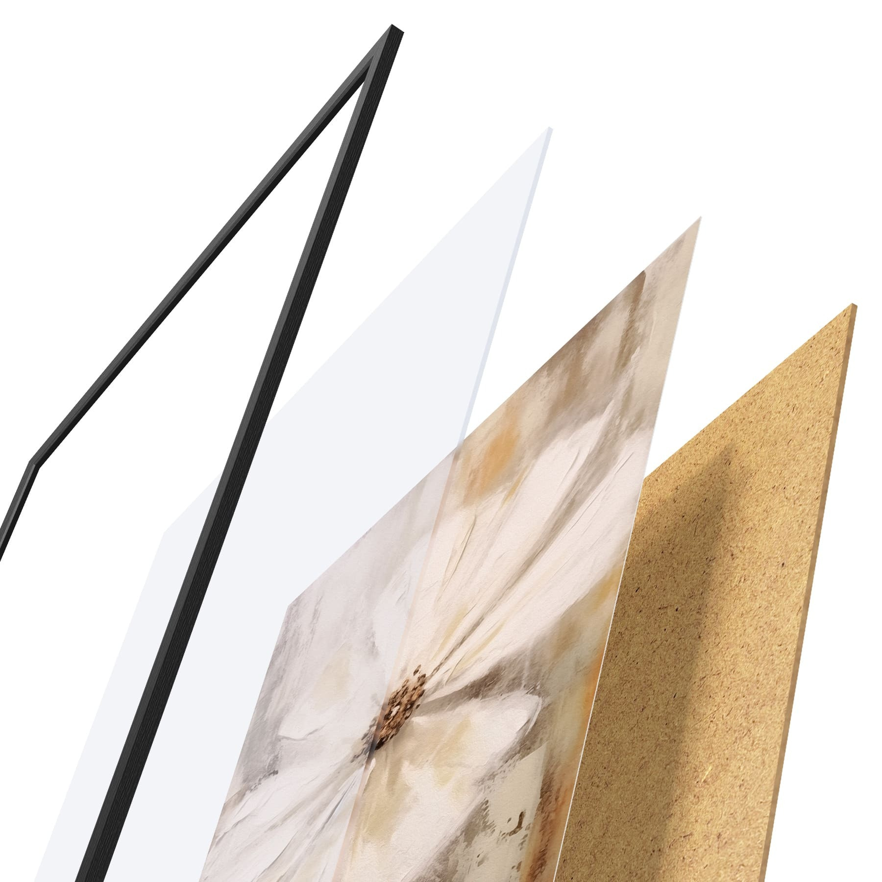 Le poster se compose d'un cadre, d'un plexiglas, d'une image imprimée et d'un support en aggloméré. Le poster peut être immédiatement accroché au mur grâce aux fixations au dos.