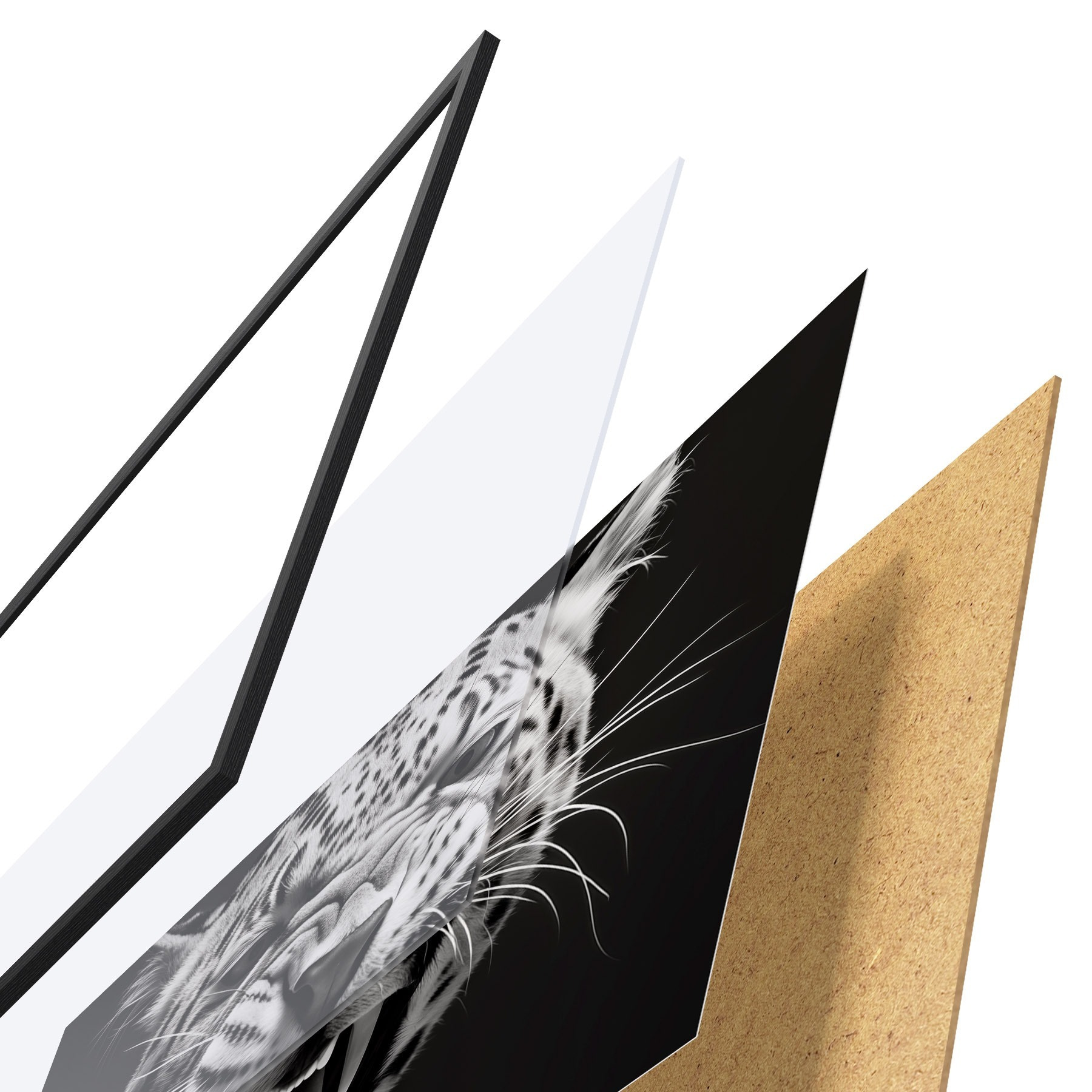 Le poster se compose d'un cadre, d'un plexiglas, d'une image imprimée et d'un support en aggloméré. Le poster peut être immédiatement accroché au mur grâce aux fixations au dos.