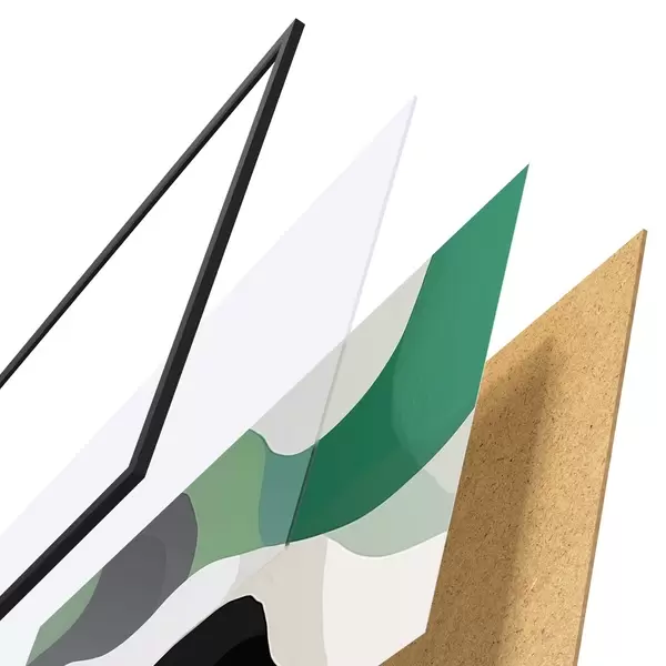 Le poster se compose d'un cadre, d'un plexiglas, d'une image imprimée et d'un support en aggloméré. Le poster peut être immédiatement accroché au mur grâce aux fixations au dos.
