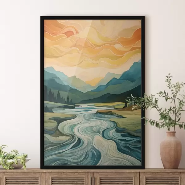 Affiche Paysage avec rivière dans un style abstrait f42652