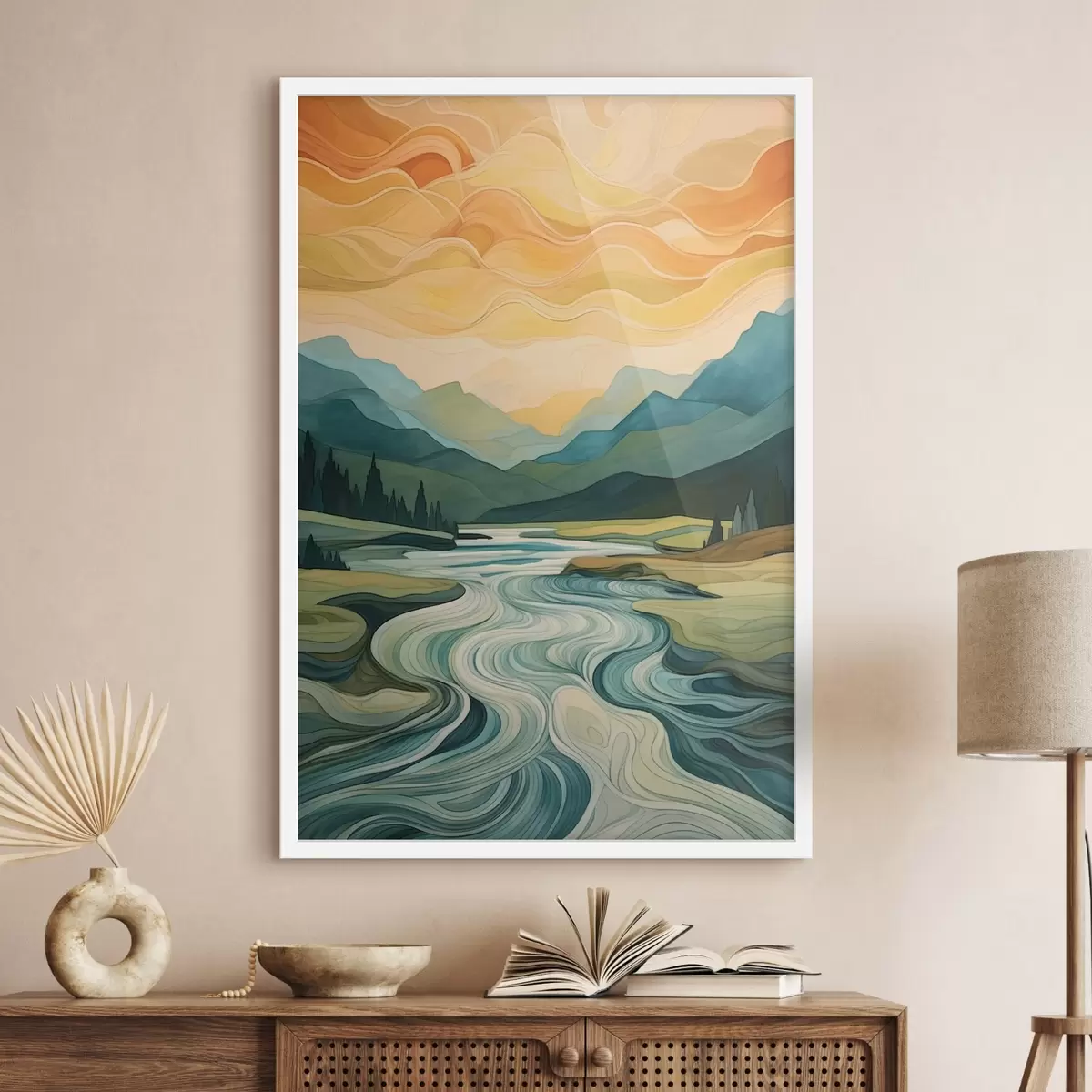 Affiche Paysage avec rivière dans un style abstrait Non f42652