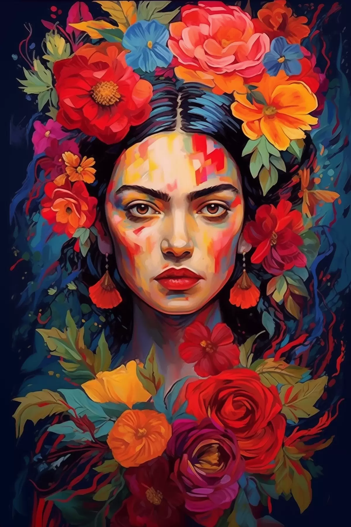 Affiche Portrait de femme avec cadre floral dans un style abstrait lumineux Non f42653