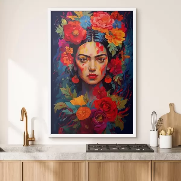 Affiche Portrait de femme avec cadre floral dans un style abstrait lumineux f42653