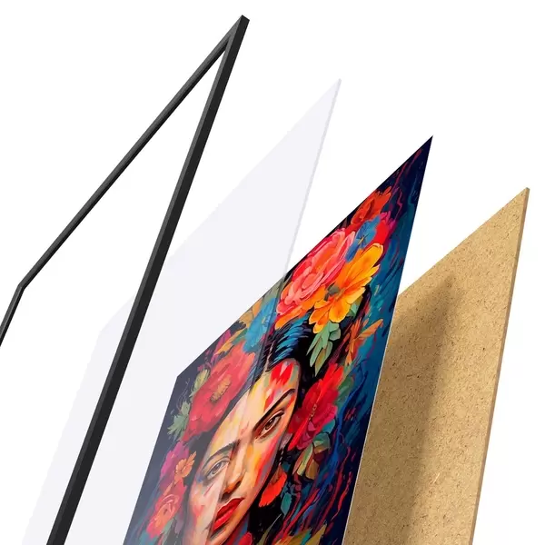 Le poster se compose d'un cadre, d'un plexiglas, d'une image imprimée et d'un support en aggloméré. Le poster peut être immédiatement accroché au mur grâce aux fixations au dos.