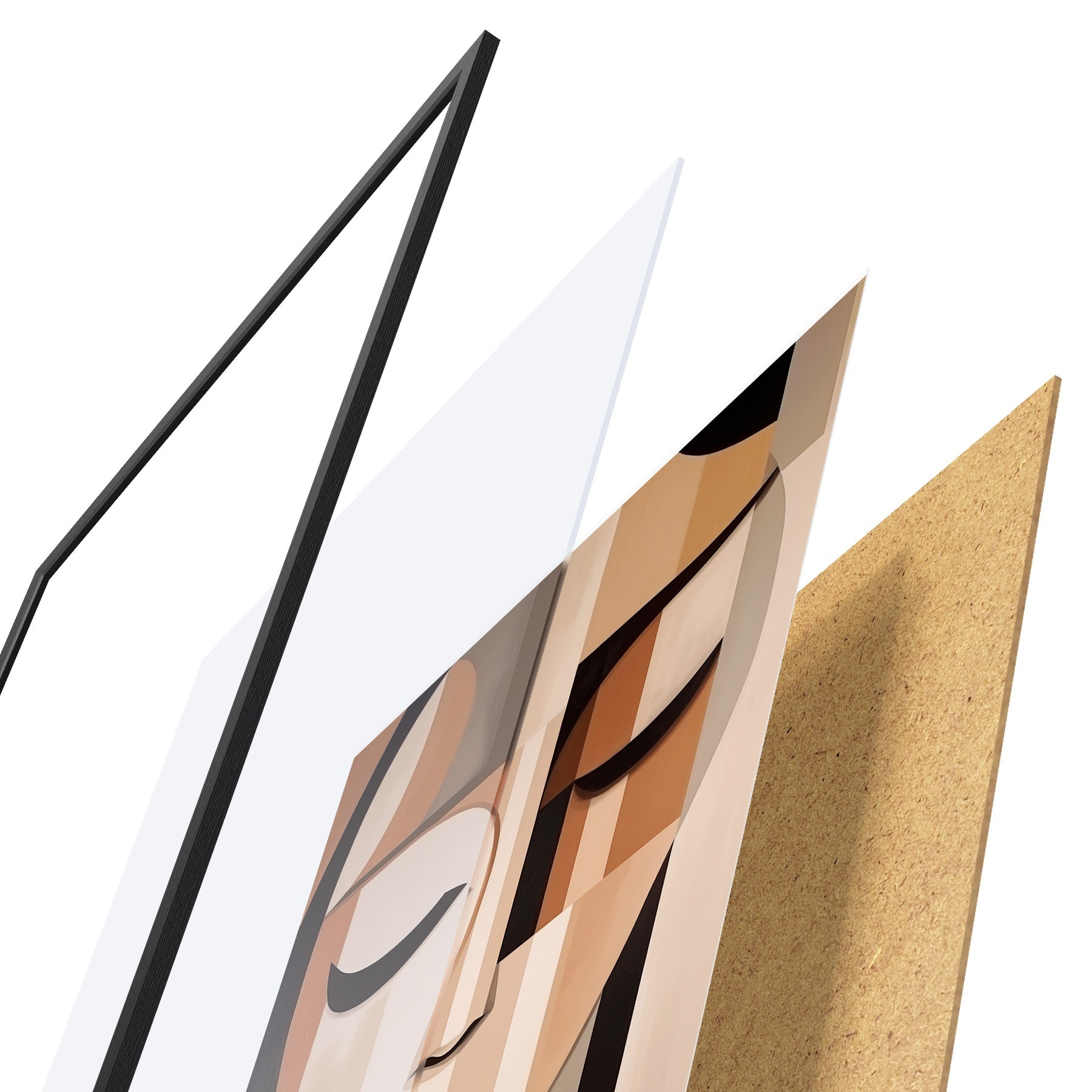 Le poster se compose d'un cadre, d'un plexiglas, d'une image imprimée et d'un support en aggloméré. Le poster peut être immédiatement accroché au mur grâce aux fixations au dos.