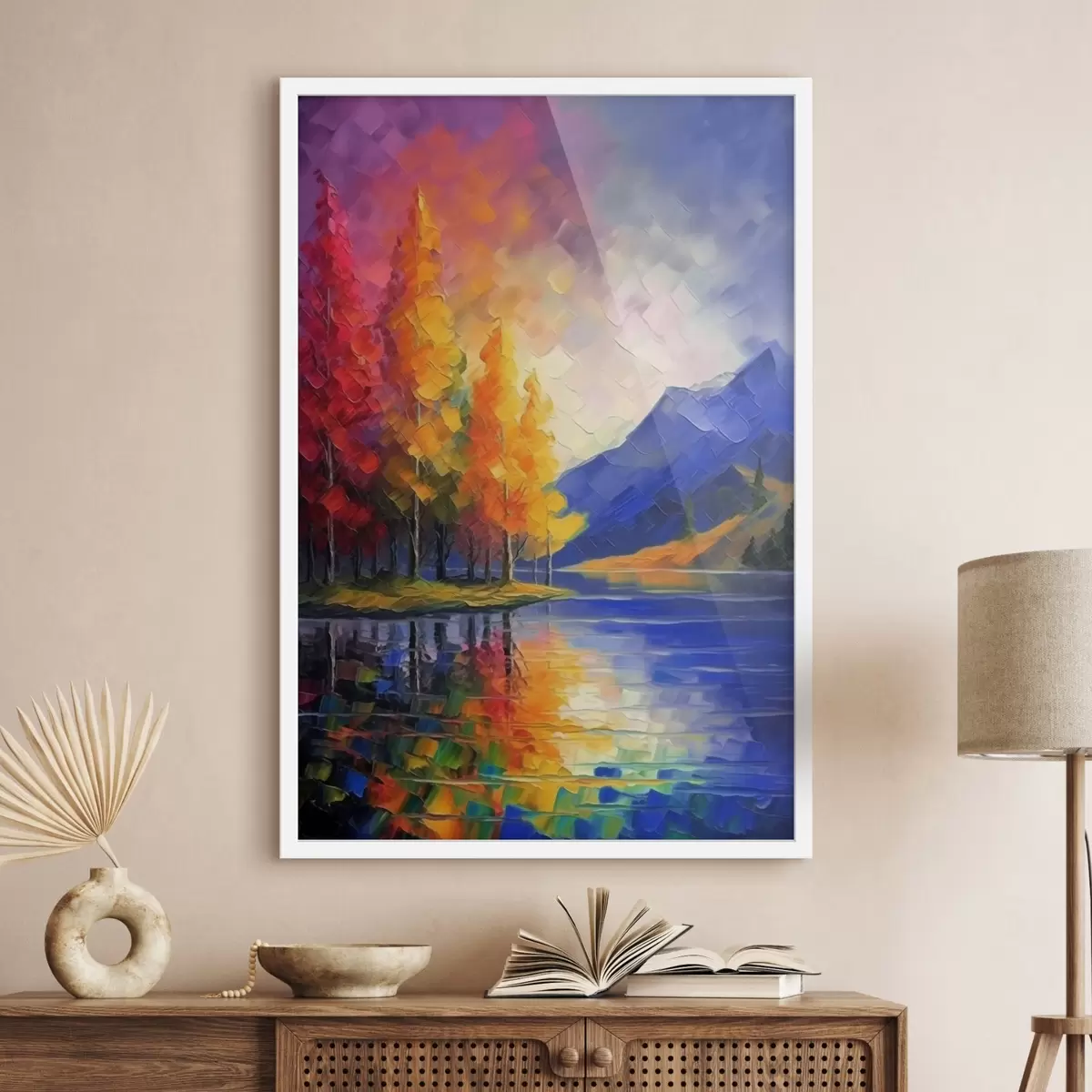 Affiche Paysage d'automne avec lac et montagnes f42661