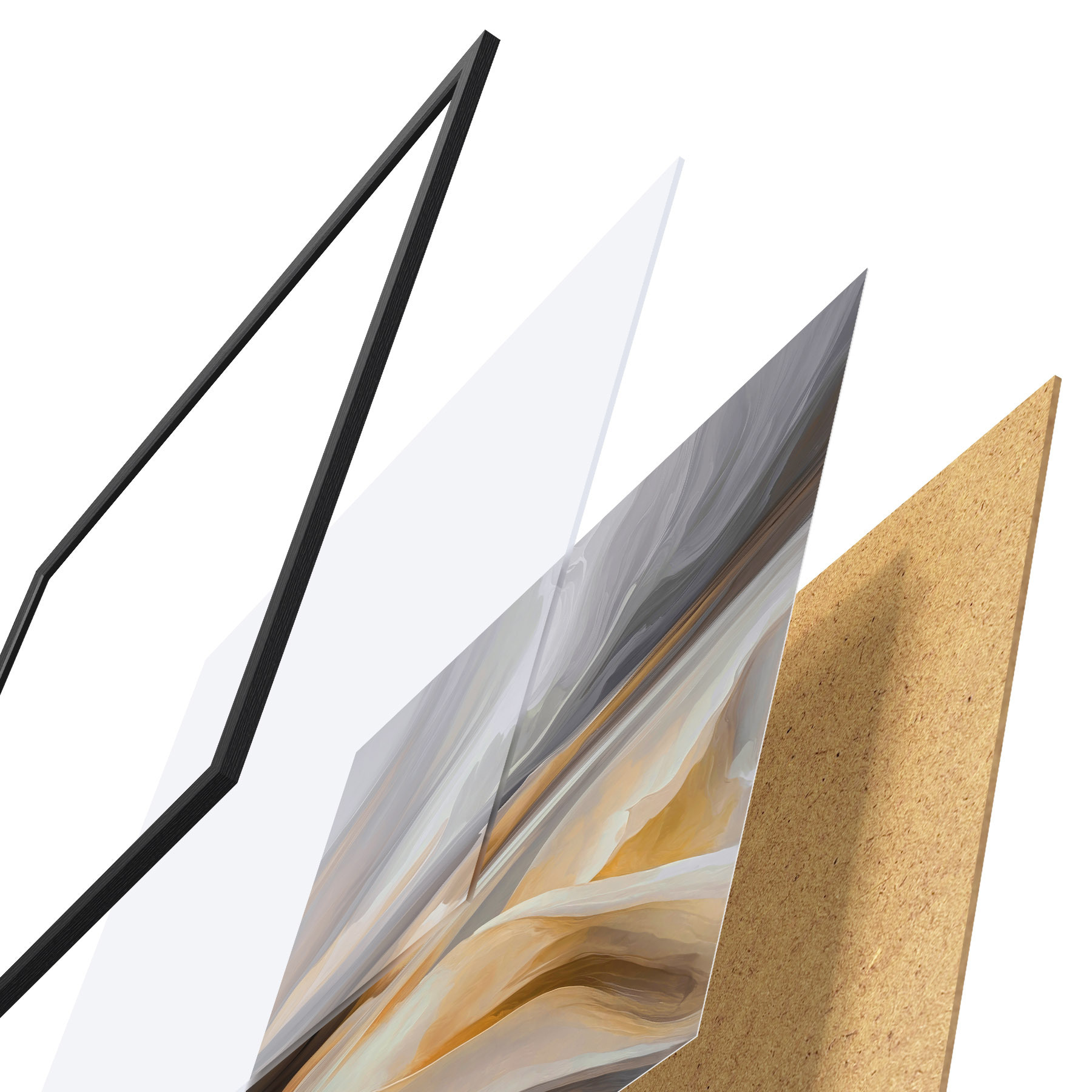 Le poster se compose d'un cadre, d'un plexiglas, d'une image imprimée et d'un support en aggloméré. Le poster peut être immédiatement accroché au mur grâce aux fixations au dos.
