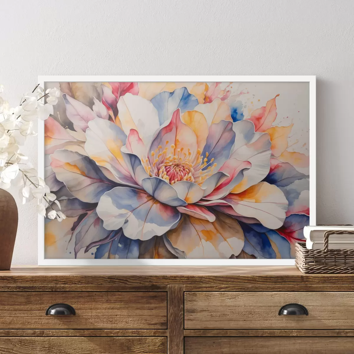 Affiche Fleur multicolore avec imitation d'aquarelle Non f42706