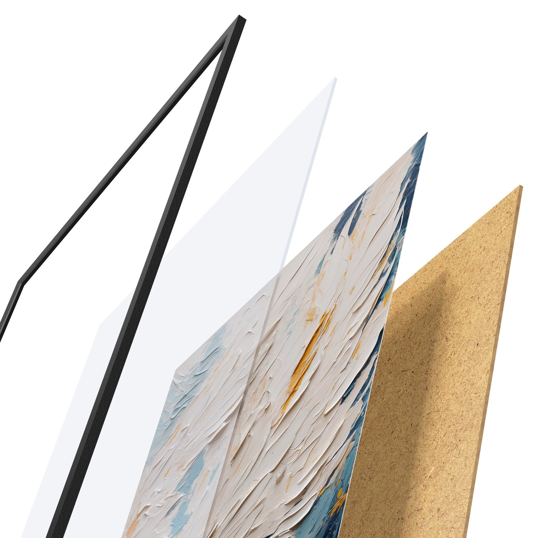 Le poster se compose d'un cadre, d'un plexiglas, d'une image imprimée et d'un support en aggloméré. Le poster peut être immédiatement accroché au mur grâce aux fixations au dos.