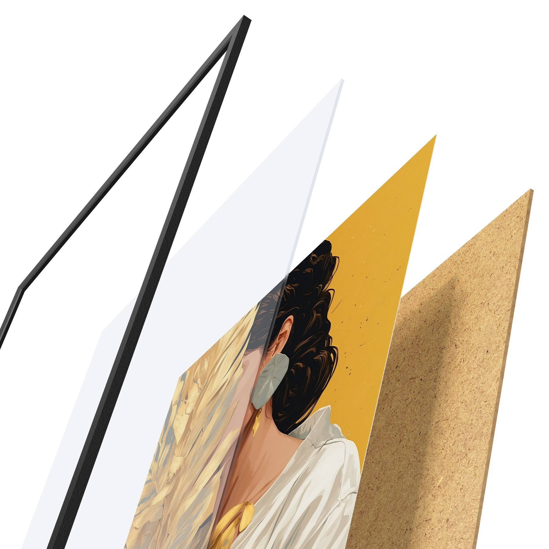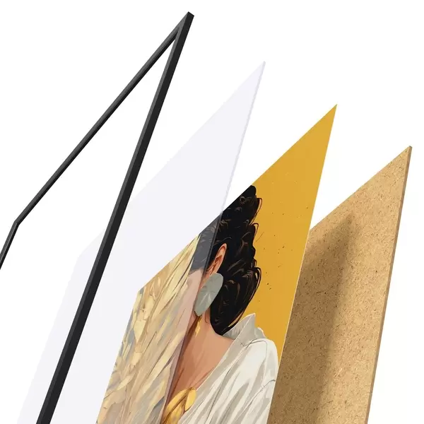 Le poster se compose d'un cadre, d'un plexiglas, d'une image imprimée et d'un support en aggloméré. Le poster peut être immédiatement accroché au mur grâce aux fixations au dos.