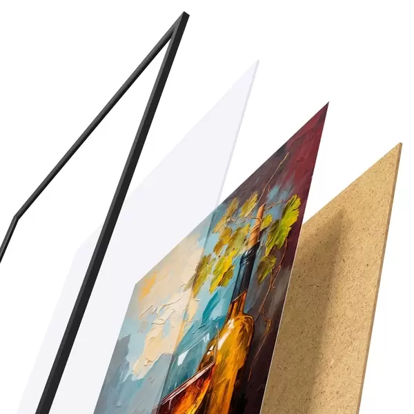 Le poster se compose d'un cadre, d'un plexiglas, d'une image imprimée et d'un support en aggloméré. Le poster peut être immédiatement accroché au mur grâce aux fixations au dos.