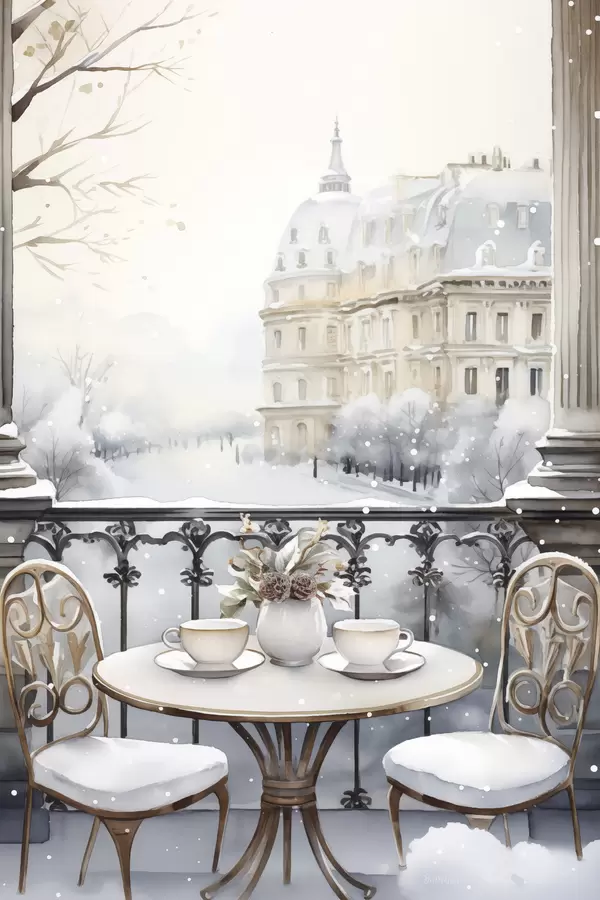 Affiche Beau café, tasses de thé, style bohème, aquarelle, esthétique hivernale Non f42796