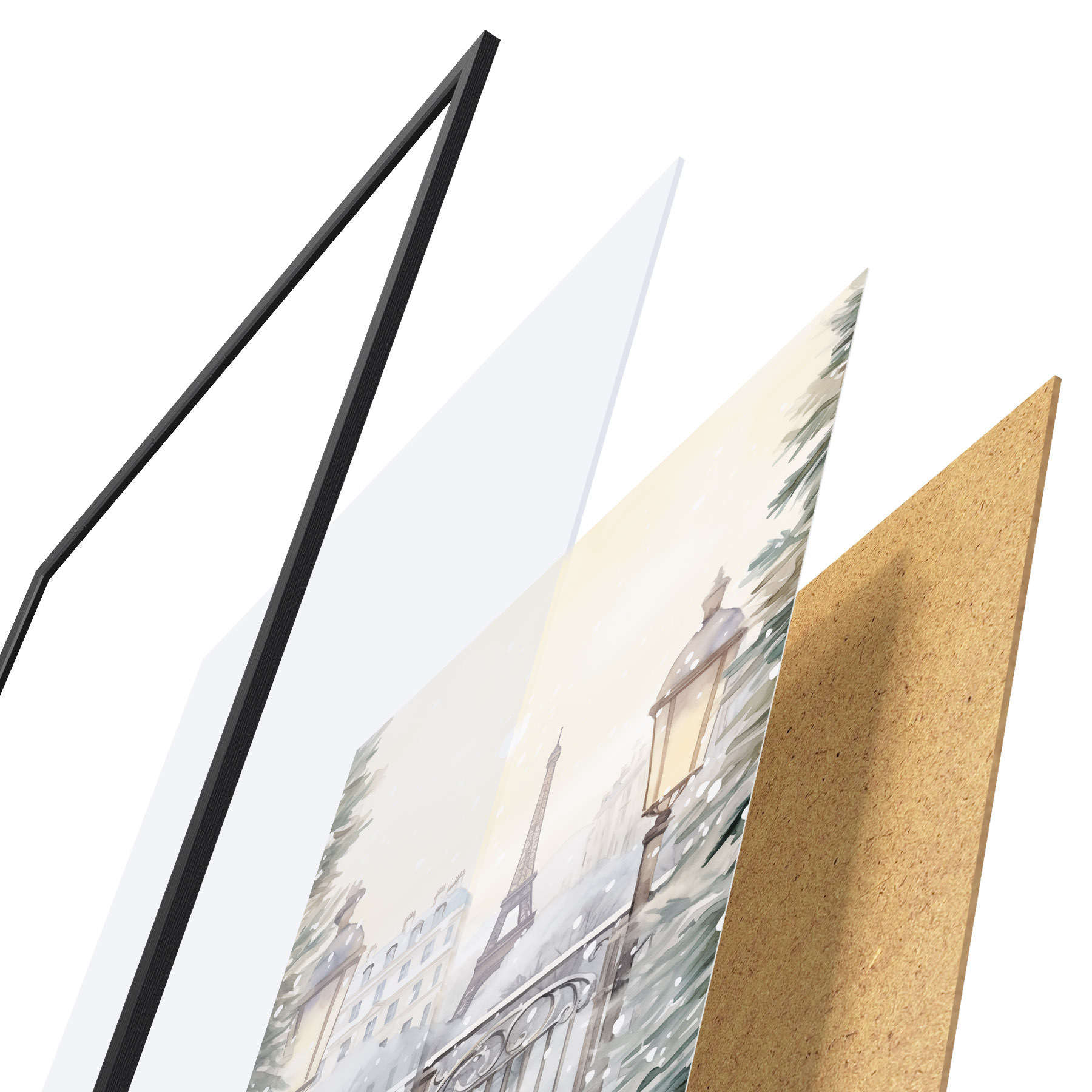 Le poster se compose d'un cadre, d'un plexiglas, d'une image imprimée et d'un support en aggloméré. Le poster peut être immédiatement accroché au mur grâce aux fixations au dos.