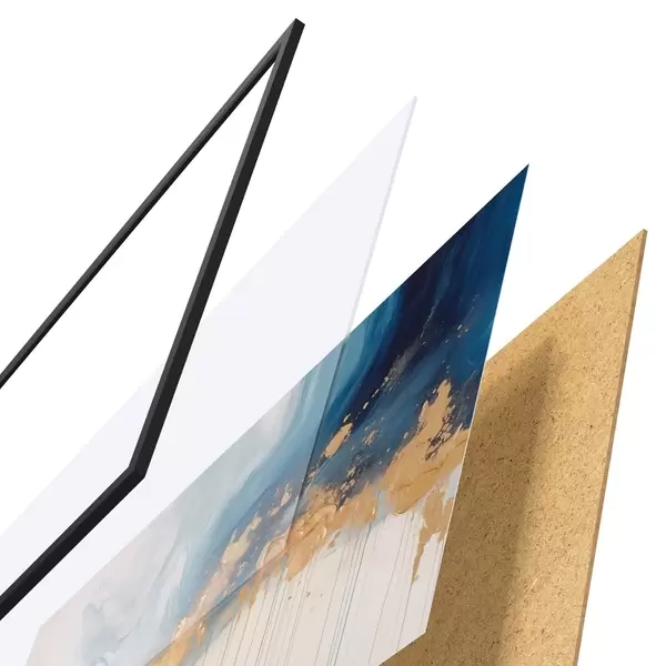 Le poster se compose d'un cadre, d'un plexiglas, d'une image imprimée et d'un support en aggloméré. Le poster peut être immédiatement accroché au mur grâce aux fixations au dos.