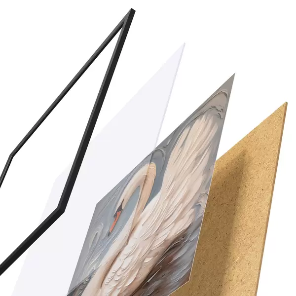 Le poster se compose d'un cadre, d'un plexiglas, d'une image imprimée et d'un support en aggloméré. Le poster peut être immédiatement accroché au mur grâce aux fixations au dos.