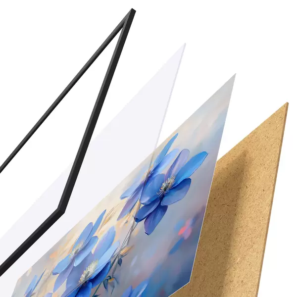 Le poster se compose d'un cadre, d'un plexiglas, d'une image imprimée et d'un support en aggloméré. Le poster peut être immédiatement accroché au mur grâce aux fixations au dos.
