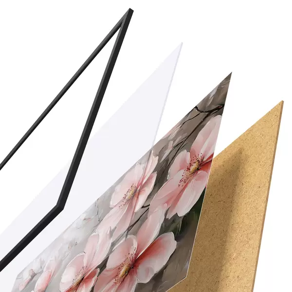 Le poster se compose d'un cadre, d'un plexiglas, d'une image imprimée et d'un support en aggloméré. Le poster peut être immédiatement accroché au mur grâce aux fixations au dos.
