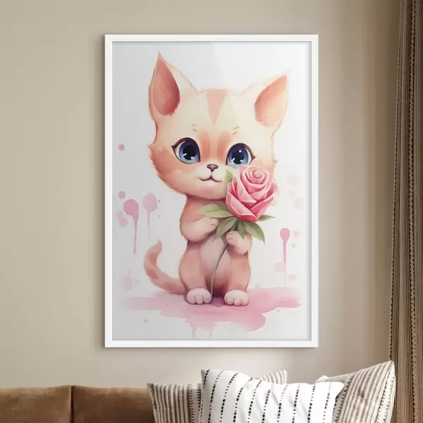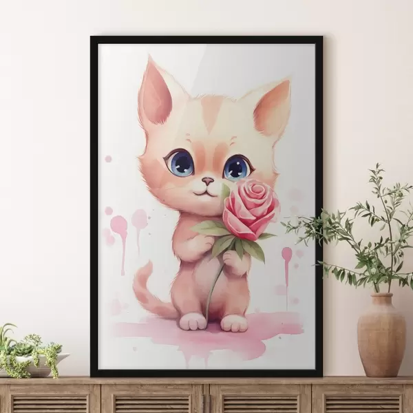 Affiche Chat mignon avec une rose f42866