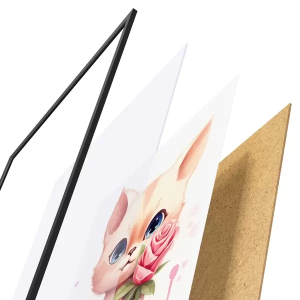 Le poster se compose d'un cadre, d'un plexiglas, d'une image imprimée et d'un support en aggloméré. Le poster peut être immédiatement accroché au mur grâce aux fixations au dos.