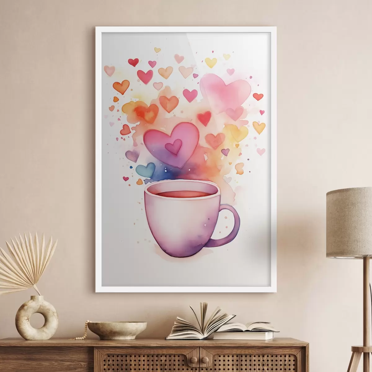 Affiche Une tasse sur fond d'aquarelle de cœurs Non f42869