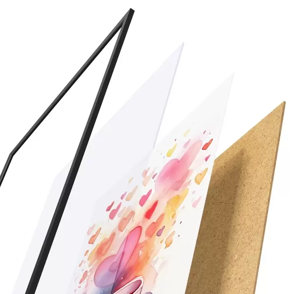 Le poster se compose d'un cadre, d'un plexiglas, d'une image imprimée et d'un support en aggloméré. Le poster peut être immédiatement accroché au mur grâce aux fixations au dos.