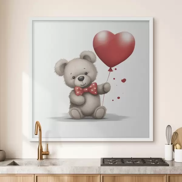 Affiche Ourson mignon avec un ballon à cœur rouge f42879