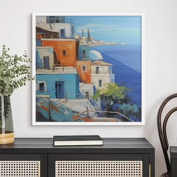 Affiche Maisons au bord de la mer imitation de traits de peinture f42899
