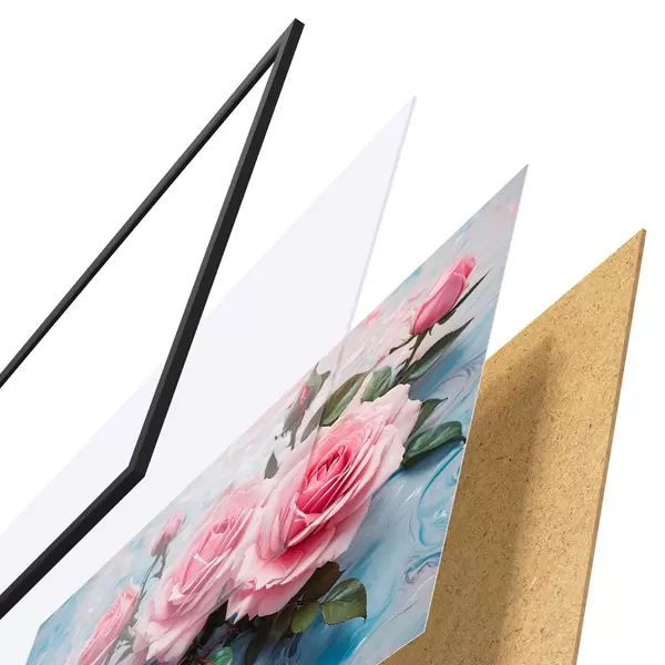Le poster se compose d'un cadre, d'un plexiglas, d'une image imprimée et d'un support en aggloméré. Le poster peut être immédiatement accroché au mur grâce aux fixations au dos.